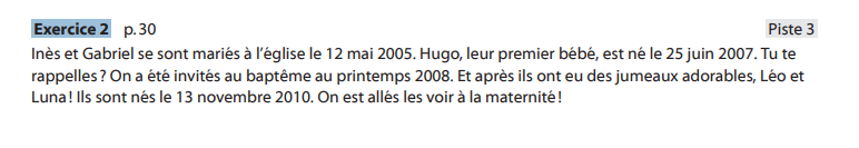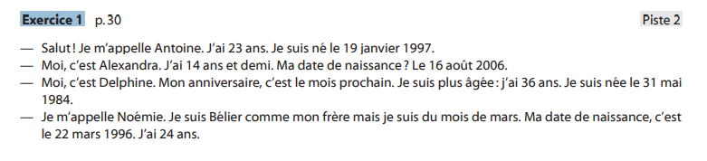 Écoute l’enregistrement. Dis quel âge ils ont en 2020 et quand ils sont nés.