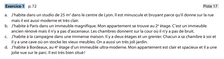 Quatre personnes parlent de leur logement. Associe chaque témoignageà une photo.