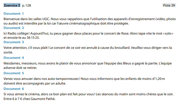Tu écoutes des annonces publiques.