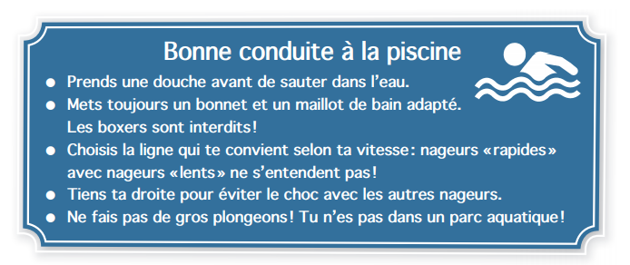 Tu lis ce règlement à la piscine municipale de ton quartier.