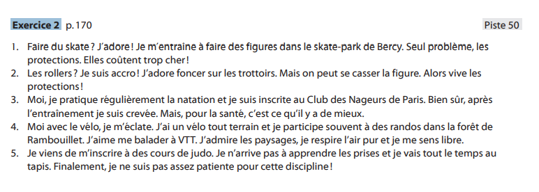 Voici un microtrottoir de la station Radio Ados sur le sport. Écoute puis réponds aux questions.
