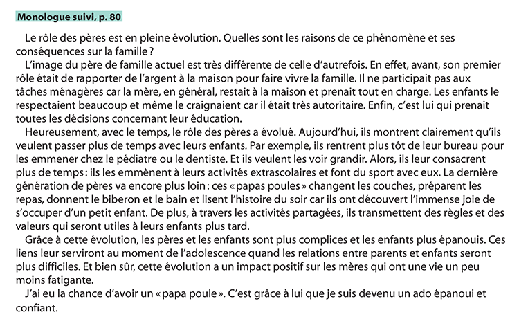 Faites la troisième partie de votre monologue suivi : Conséquences de l’évolution du rôle des pères.