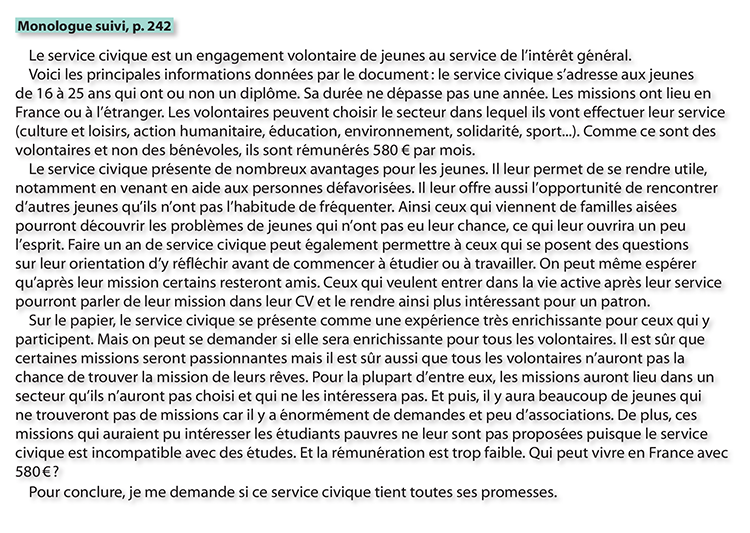 Faites votre monologue suivi en reprenant les idéesprécédentes. Illustrez-les par des exemples.