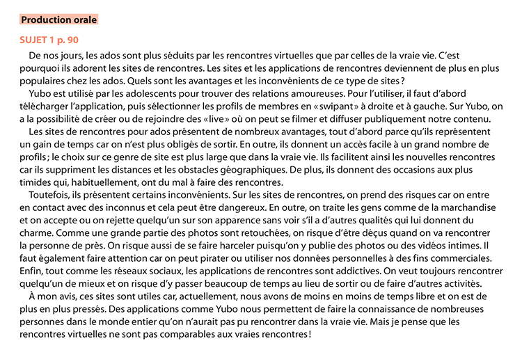 Faites votre monologue suivi en reprenant les idées précédentes.Illustrez-les par des exemples.