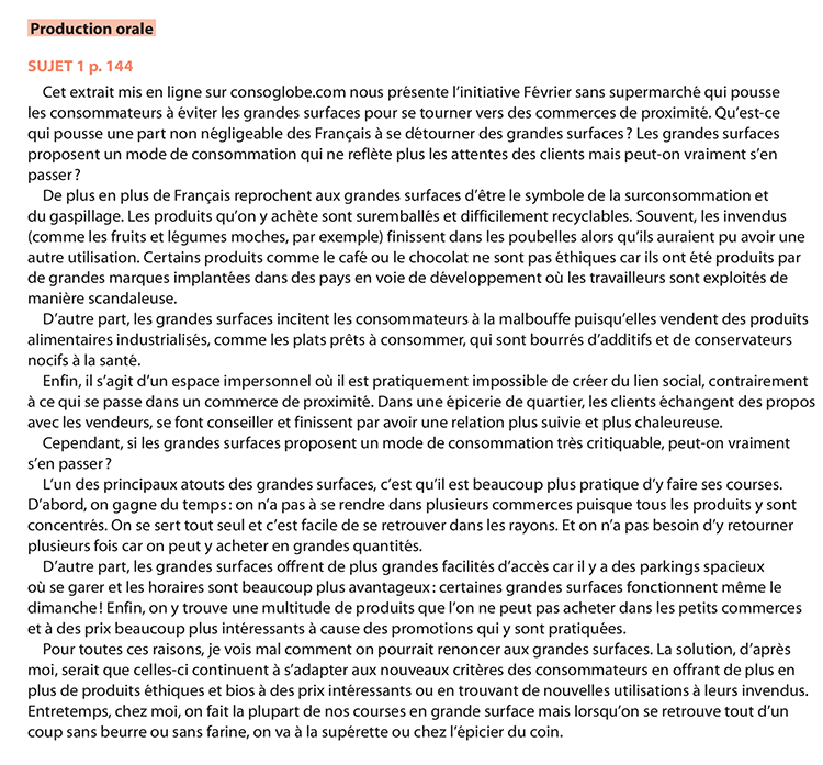 Faites votre monologue suivi en reprenant les idées précédentes. Illustrez-les par des exemples.