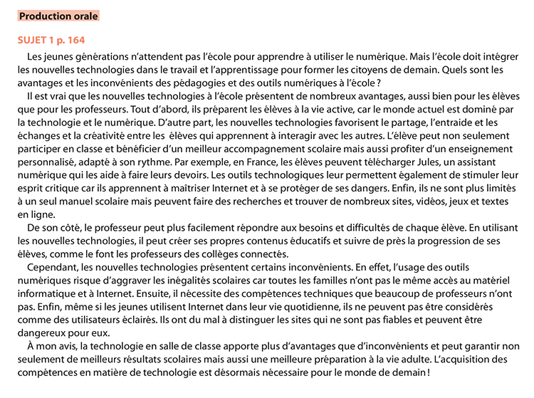 Faites votre monologue suivi en reprenant les idées précédentes. Illustrez-les par des exemples.