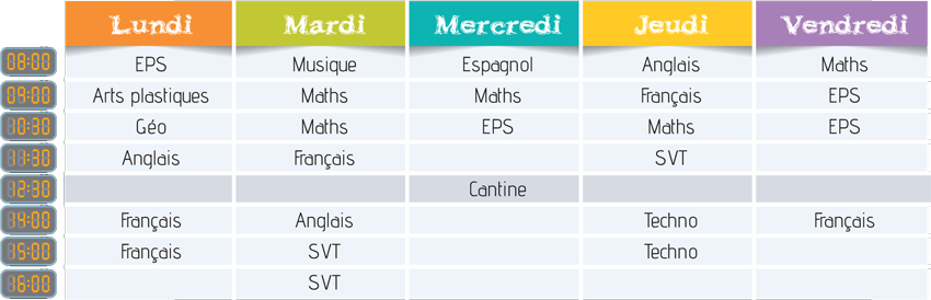 Regarde l’emploi du temps d’Élise, puis réponds aux questions.