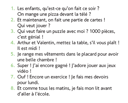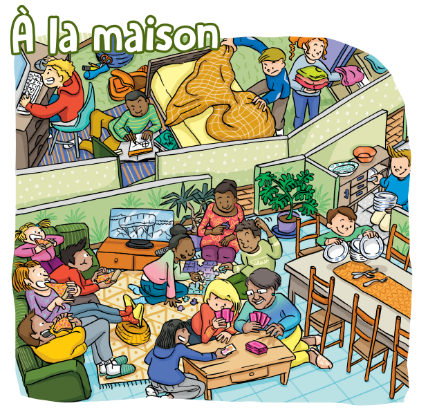 Écoute et montre sur le dessin les occupations à la maison.