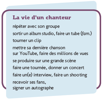 Tu es un chanteur célèbre. Tu racontes une journée type à ton voisin.