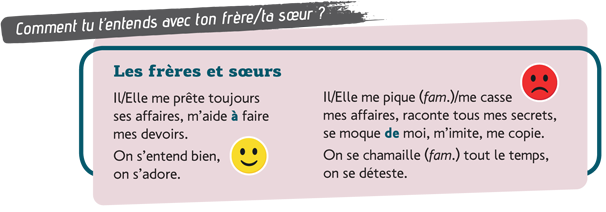 Tu t’es disputé avec ton frère/ta sœur. Tu te confies à ton voisin qui te pose des questions. Tu exprimes la colère.